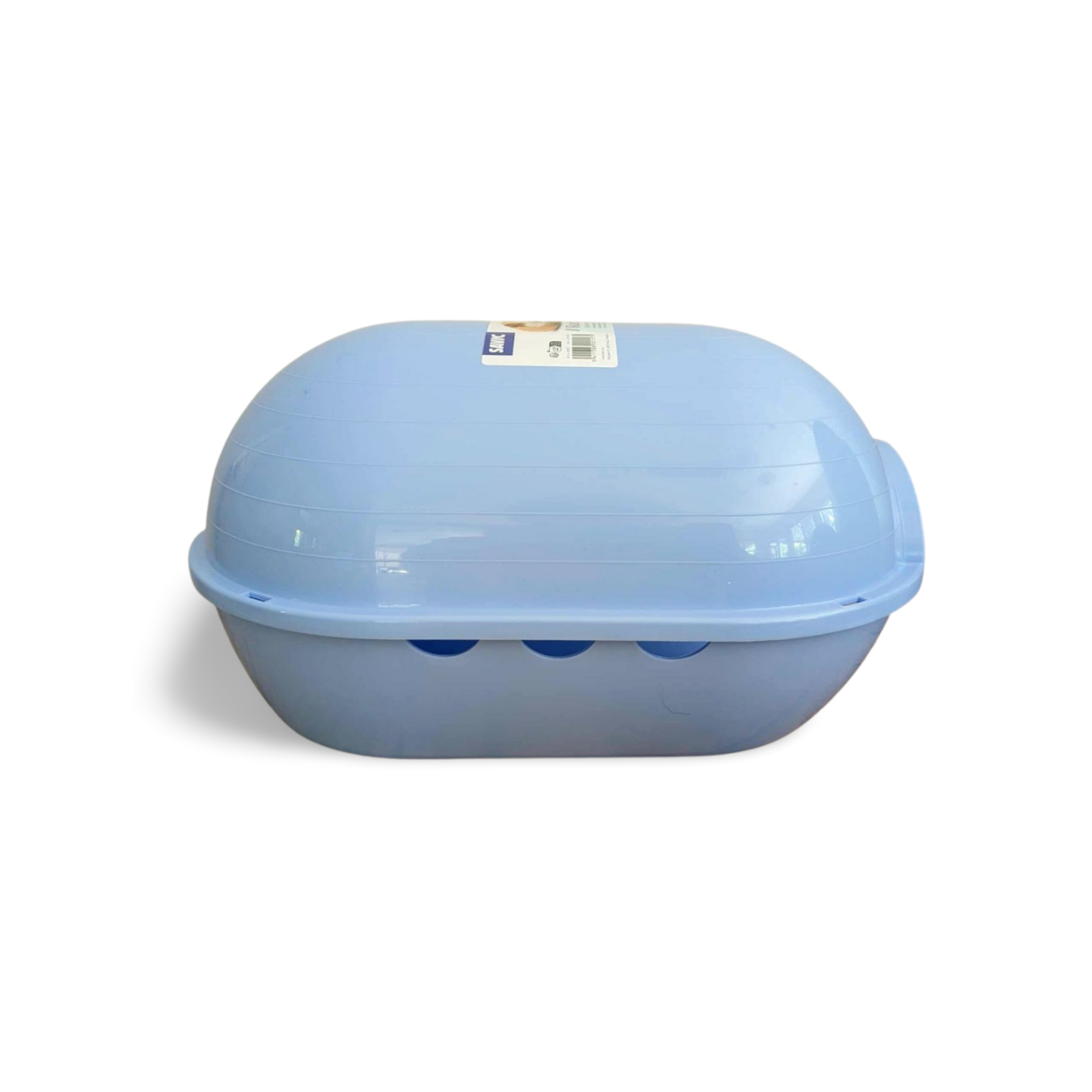 Easy to take apart (2 pieces) and clean in hot soapy water. There are ventilation holes on either side to help with airflow.
